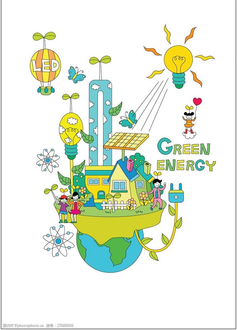 "卡通科技城市人物 環(huán)保科技的未來藍(lán)圖",